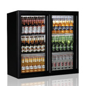 IBC0026SD er et 2 dørs back bar køleskab med skydelåger, og med et volume på brutto 200L og netto 180L liter. Da et backbar åbnes mange gange om dagen, er dette skab forsynes med en fjeder som bidrager til at døren lukker automatisk når den har været åben. Skydelåger kan være at foretrække på diskoteker, barer hvor der er meget travlt. Et back bar med skydelåger kræver heller ikke så meget plads at åbne på, sammenlignet med et backbar køleskab med hængslede låger.