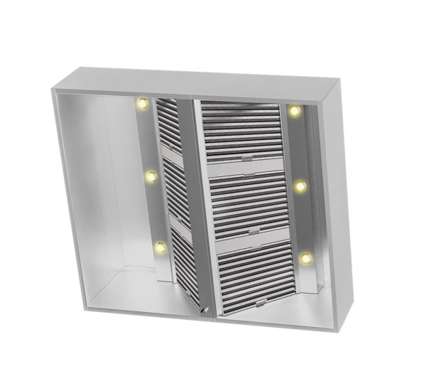 BENDY Box emfang-Kogeø -Loftmonteret industri emfang med indbygget LED belyning. Emfanget har indbygget fedtaftapningshane, og er monteret med filtertype B. Emfanget kan anvendes i alle professionelle køkkener hvor der er behov effektiv for ventilation.For at lette den daglige rengøring kan filtre nemt aftages og vaske i opvaskemaskine Denne model skal tilkobles udsugningsmotor og potentometer. Emfanget skal tilsluttes 220V. Dimension: H x B x D: 220x240x55cm